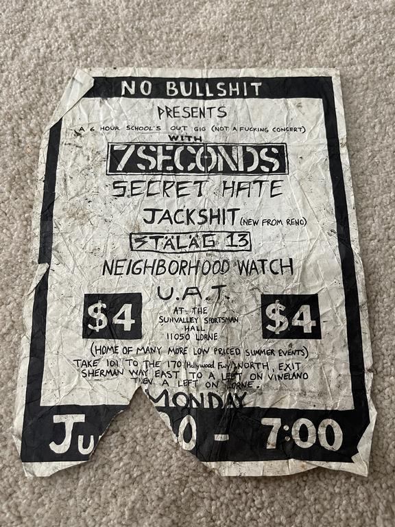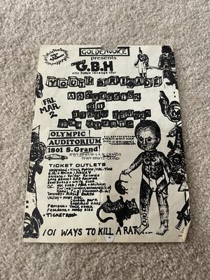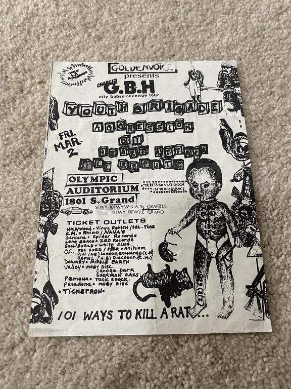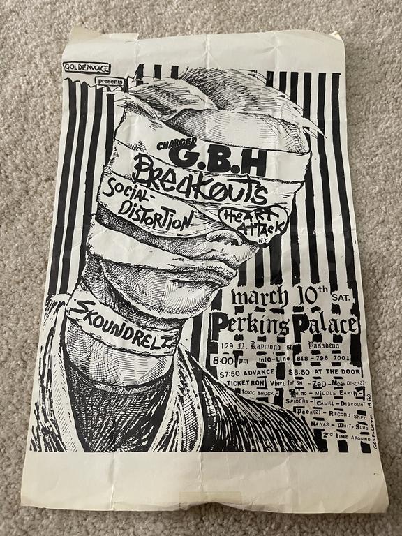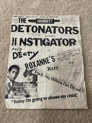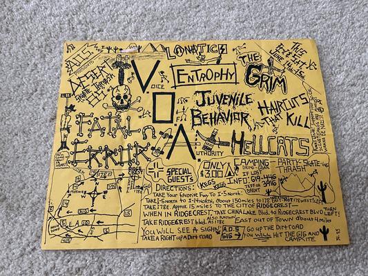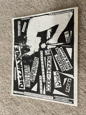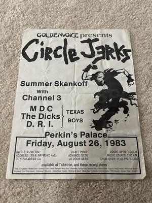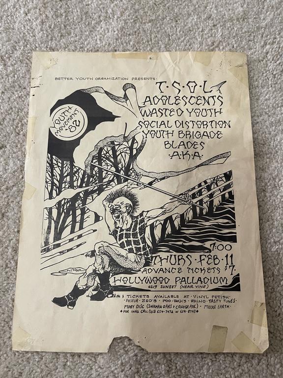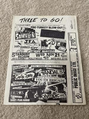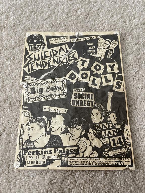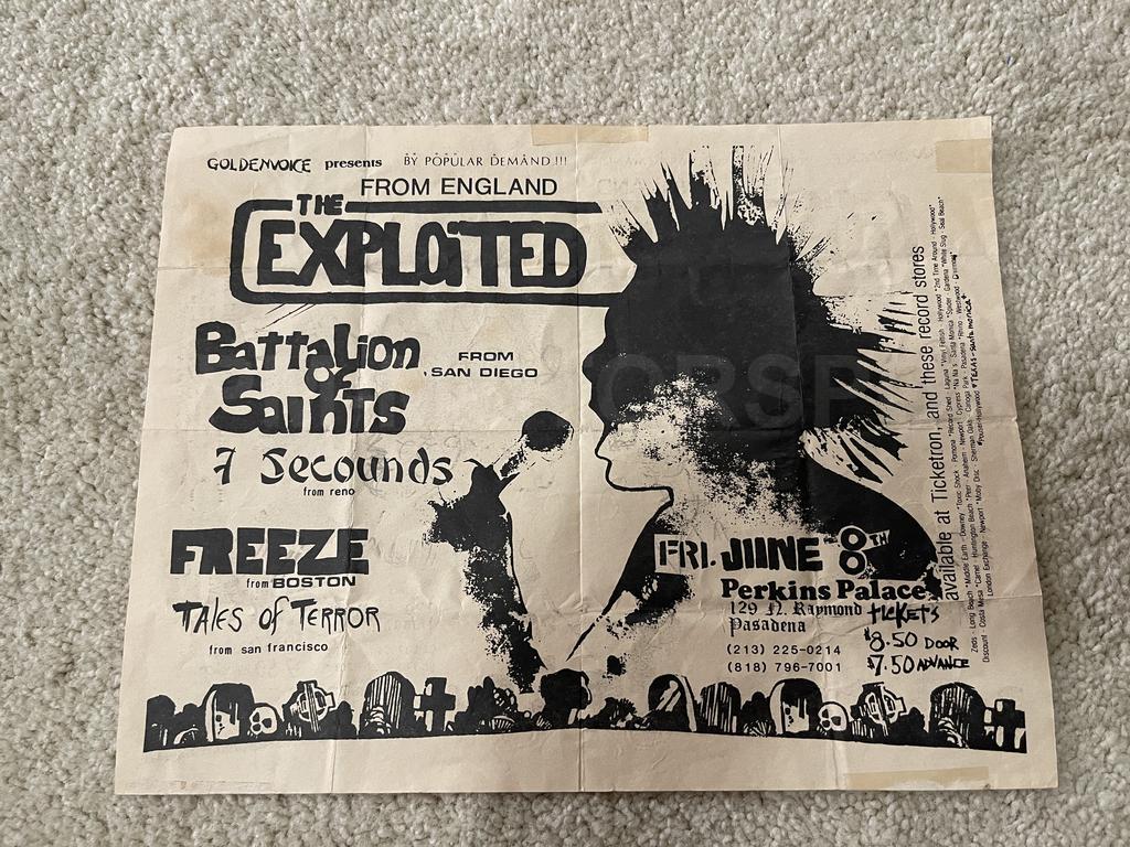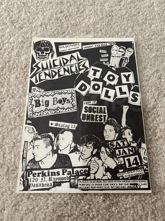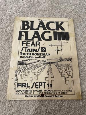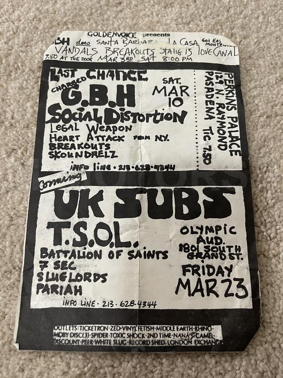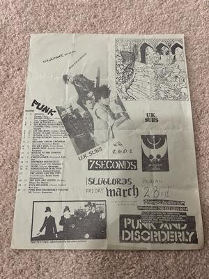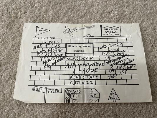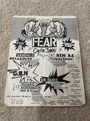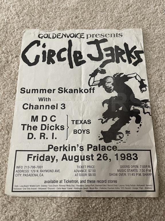 I have 114 original 1980's Punk Rock flyers, song set list, passes and mailers. Yes, I went to all of these gigs/concerts back in the day. I collected these myself. All are in fair condition as these were folded and or mounted to walls and polls at one time in their life. So there might be some tears and holes and some minor damage.