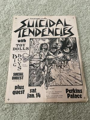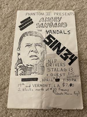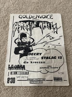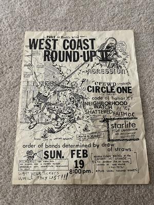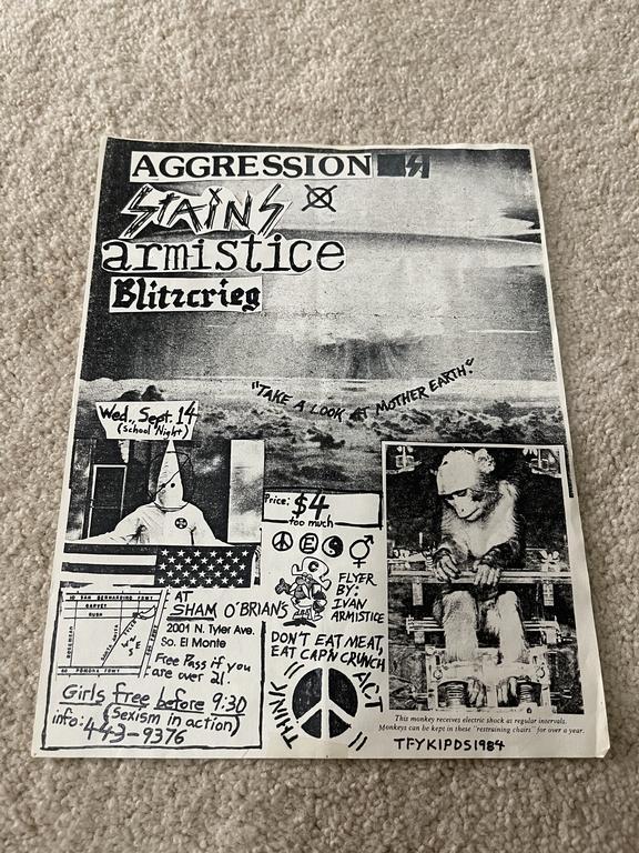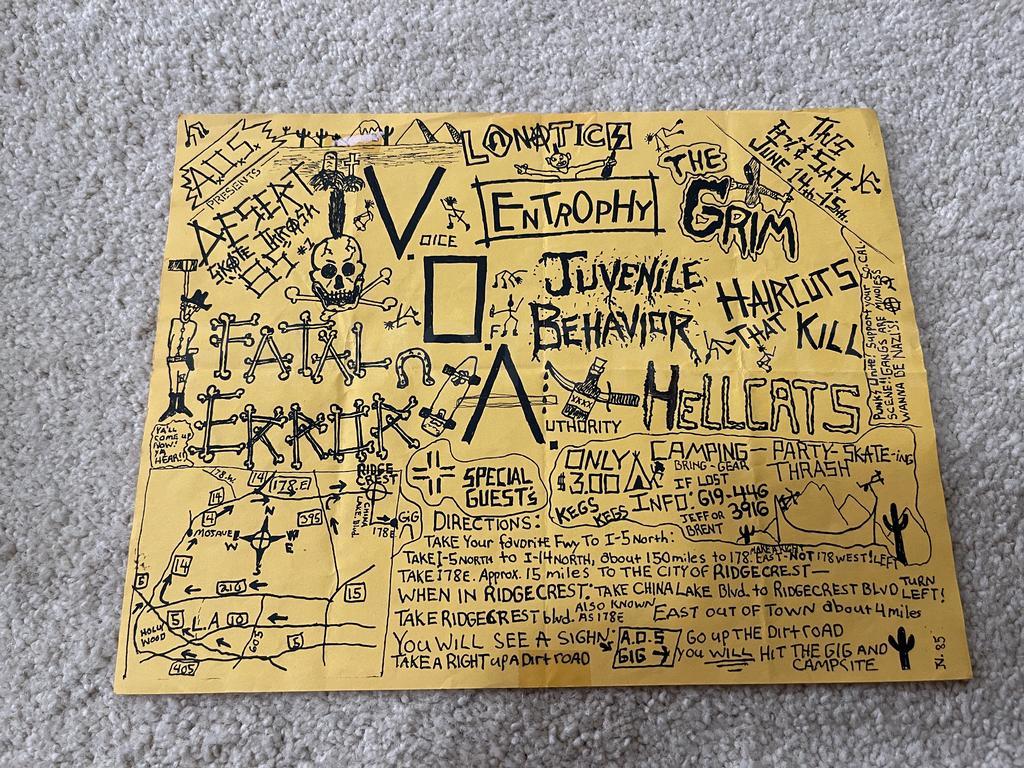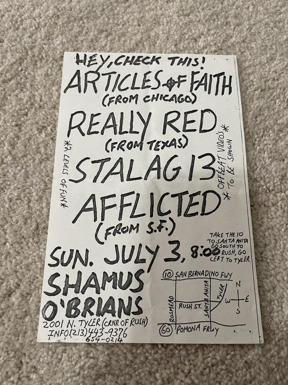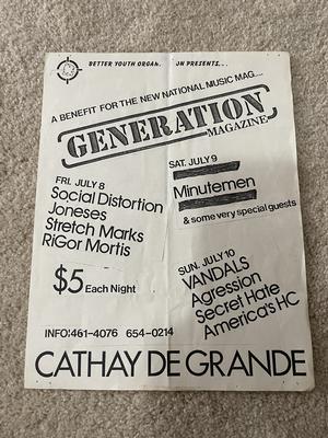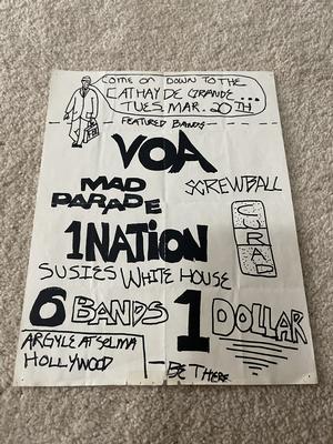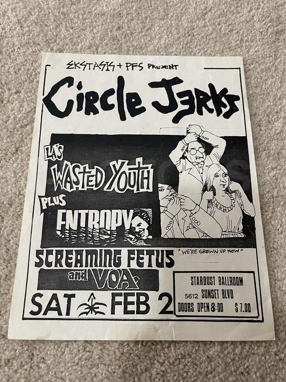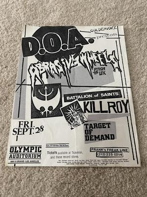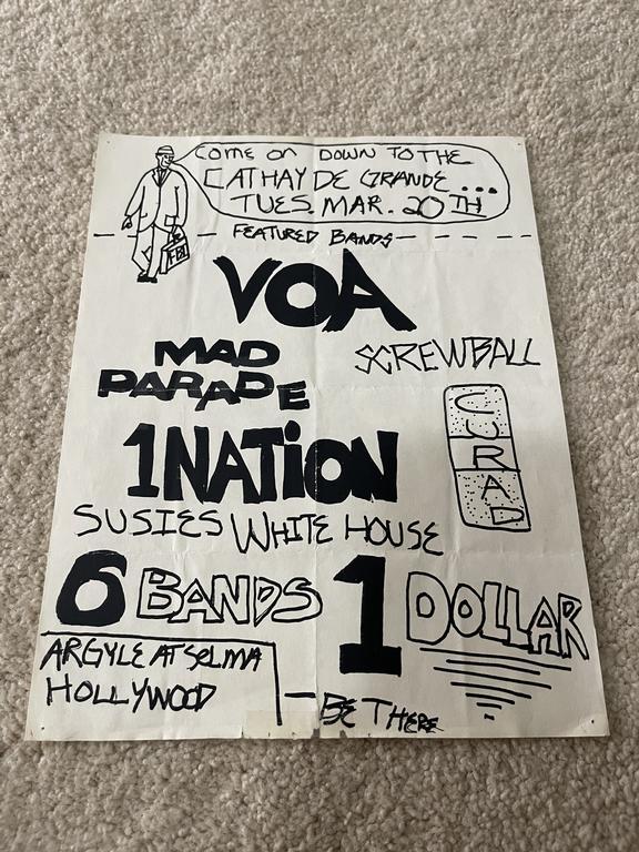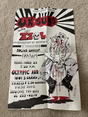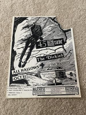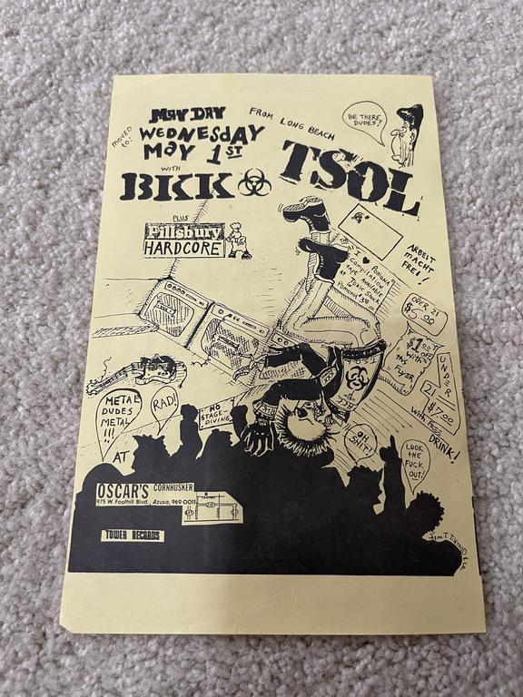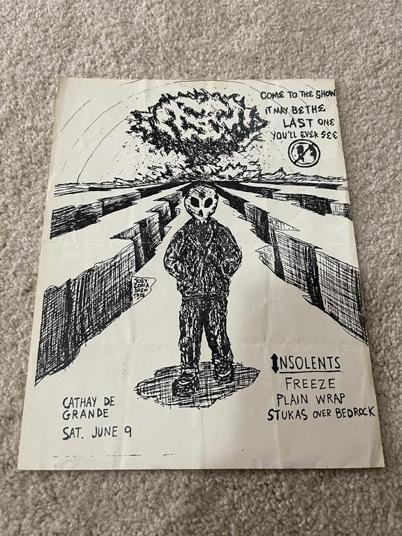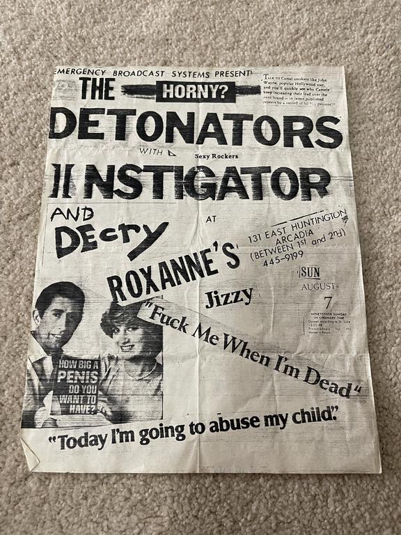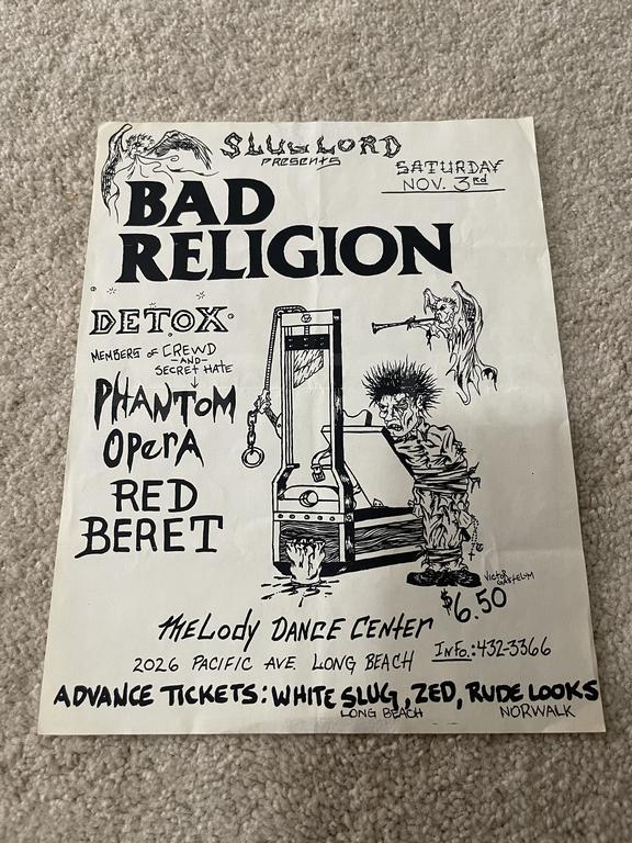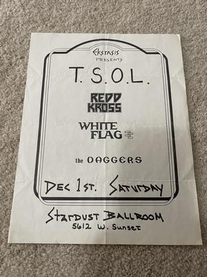 I have 114 original 1980's Punk Rock flyers, song set list, passes and mailers. Yes, I went to all of these gigs/concerts back in the day. I collected these myself. All are in fair condition as these were folded and or mounted to walls and polls at one time in their life. So there might be some tears and holes and some minor damage.